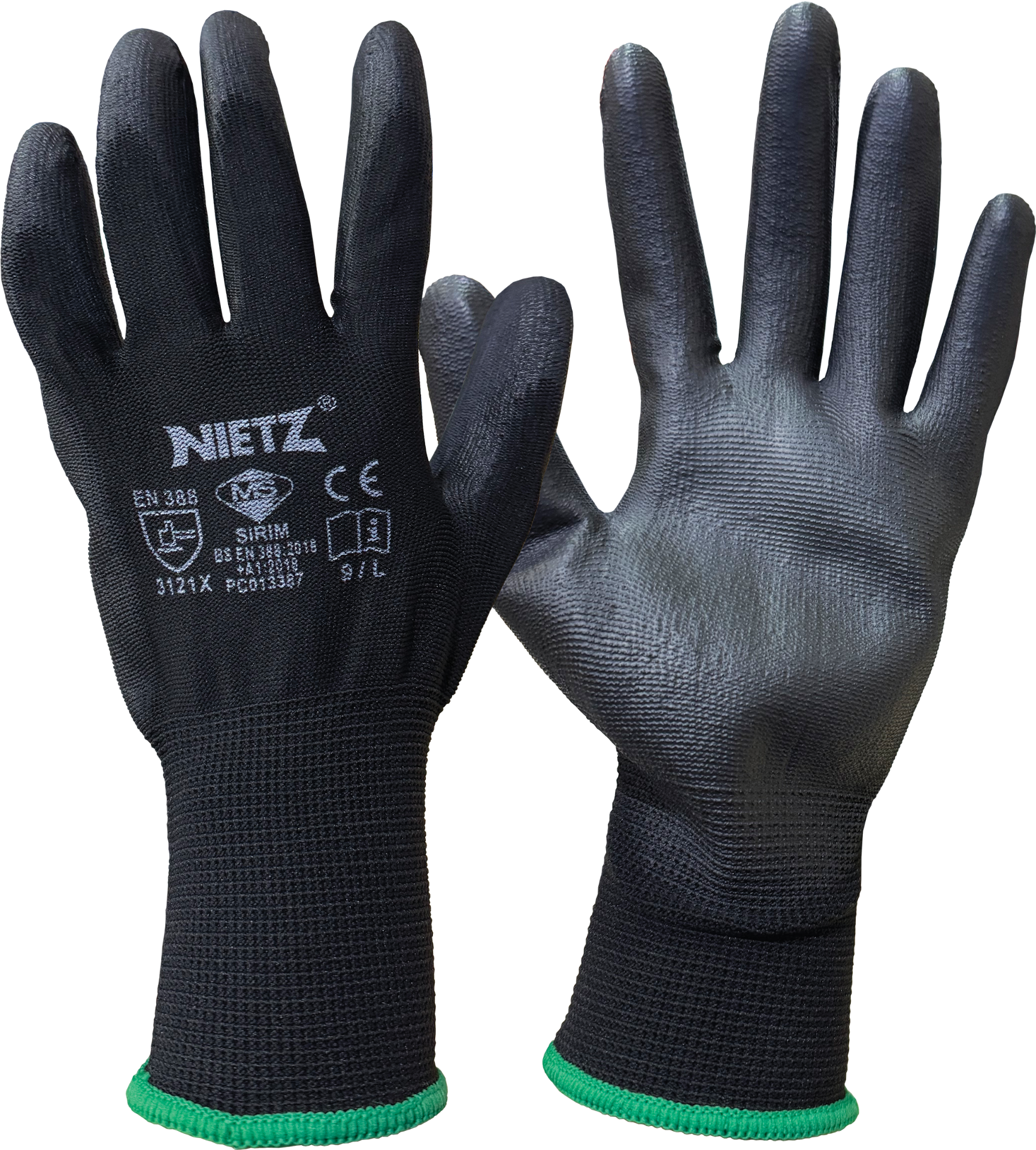 NIETZ PU FIRM GRIP POLY GLOVES BLACK/BLACK L